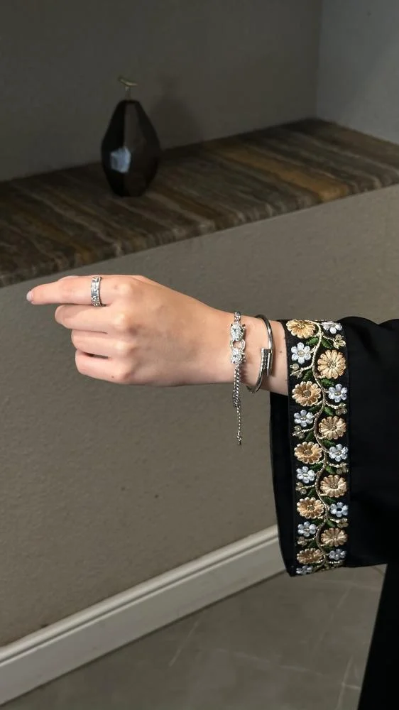 عباية ورود تجمع بين الرقي والتميز فى تصميم يعكس الذوق الرفيع ، صُنعت من قماش الكريب الفاخر المعروف بانسيابيته ونعومة، لتمنحك راحة وأناقة في كل مناسبة ، تميّزت العباية بتطريز وردي دقيق على أطرافها وأكمامها، نُفِّذ بعناية ليضفي لمسة من الفخامة والأنوثة الراقية على التصميم ، إنها قطعة تعبّر عن الجمال الهادئ وتناسب الإطلالات الرسمية والمناسبات الخاصة على حدّ سواء ، تألقي بفخامة التفاصيل مع متجر لمسه حيث يجتمع الإتقان مع الذوق الرفيع في التصميم.