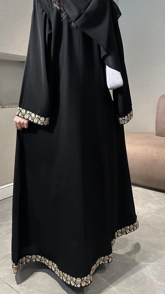 - الأكمام بتصميم متناسق يضفي لمسة فنية أنيقة تبرز فخامة العباية.