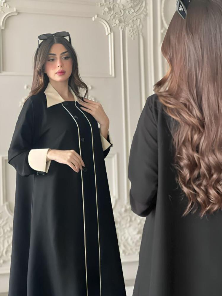 - اللون الأسود الكلاسيكي مع التدخيلة البيج يناسب جميع الأذواق والمناسبات.